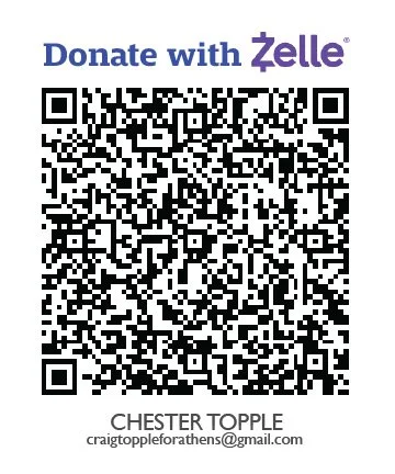 Contributions can also be sent via Zelle to: craigtoppleforathens@gmail.com